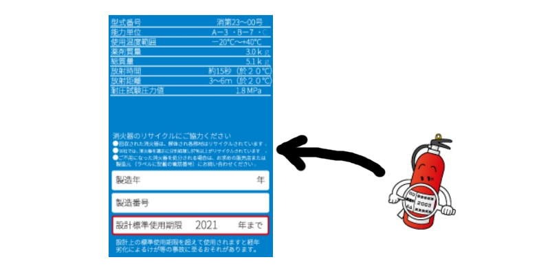 実は一般家庭にある消火器の4本に1本は使用期限切れというデータがあるようですので、もしご自宅にある場合は消火器本体に使用期限が表示されていますのでチェックしてみましょう。