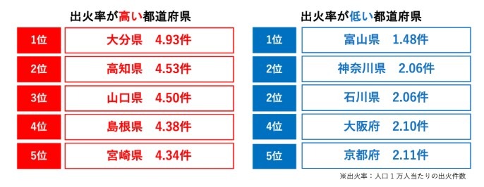 じつは富山県が最も低い出火率となっています(^^)/