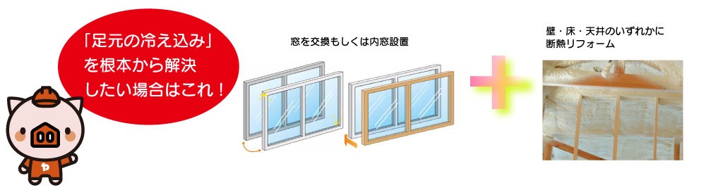 リビング: 掃き出し窓を最新の断熱窓に交換(または内窓設置) + 床を剥がして高機能な断熱材を敷き詰める。