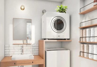 ランドリールームがあると、リビングのそこら中に干してある洗濯物と過ごすストレスもなくなり、洗濯物を干す時間を朝から夜にシフトが出来ます。特に共働きのご家庭は夜に洗濯することが多いかと思いますので、衣類乾燥除湿器をセットで使用されている方が多いです。