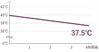4時間後も温度低下をわずか2.5℃以内に抑えるので次の人にも温かくてエコ。
