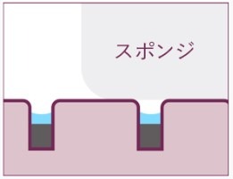 床の溝までスポンジが届く形状です。水滴が残りにくく、乾きやすいのが特長です。