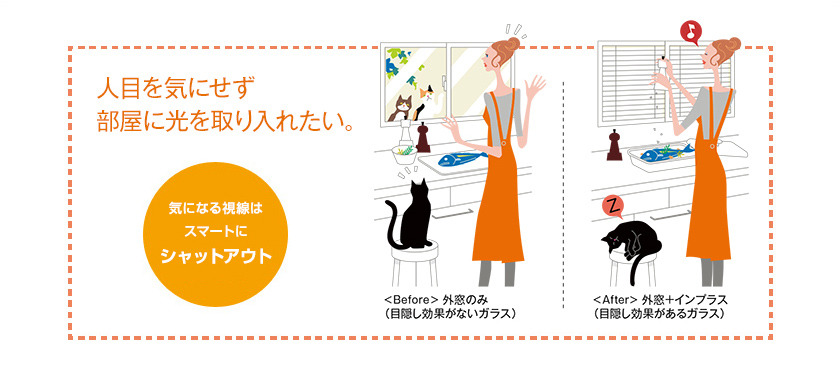 既存の窓と、内窓として取付けたインプラス、さらにその間に生まれる新しい空気層が室外と室内をしっかり隔てる構造に。大きな断熱効果で外気温の影響を受けにくくし、結露の発生を抑えます。