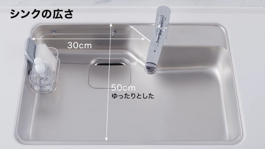 らくエルシンクは 小物収納を自分好みに カスタマイズ。 おおきなフライパンも 『縦置き』ができる うれしいゆったり設計。