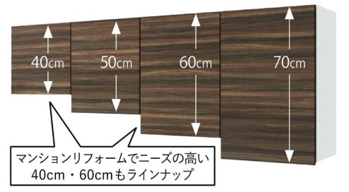 通常2~3サイズに加え 業界初高さ40㎝の バリエーションをご用意。 大きな窓上現場にも気の利く 収納設計
