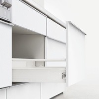 引出しを滑らかに引き込む機構と、奥行きいっぱい引き出せる構造のソフトモーションレール仕様。