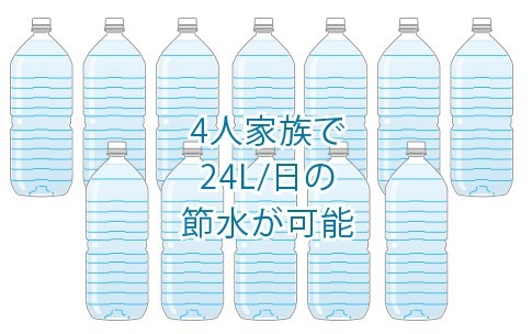 4人家族の場合、1日24L、年間なら2Lのペットボトル約4380本分も節水できます。