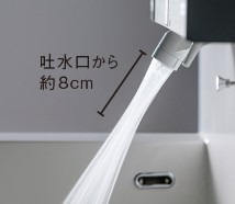 水流が交差して集中したところ(吐水口から約8cm)と、広がりのあるところを組み合わせた新形状の水流です。
