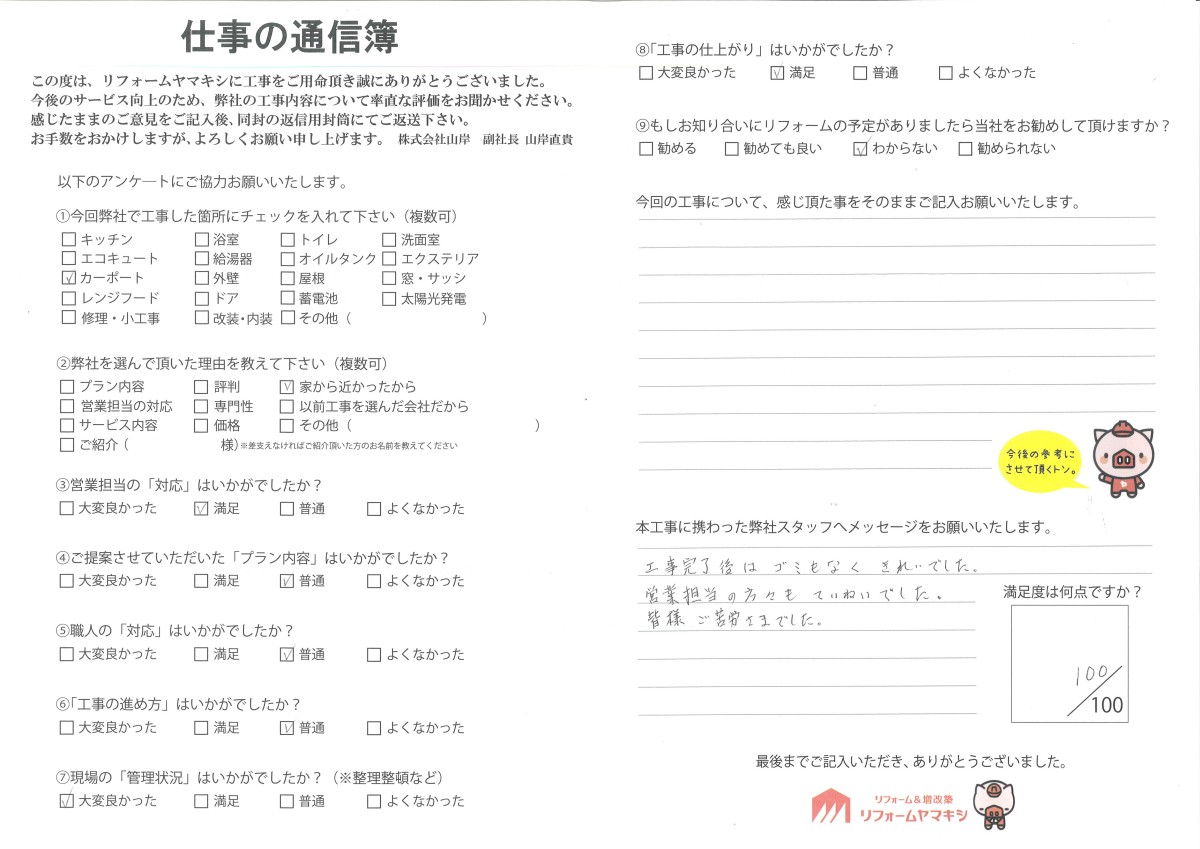 希望通りに早めい工事をして頂いました。ありがとうございました。