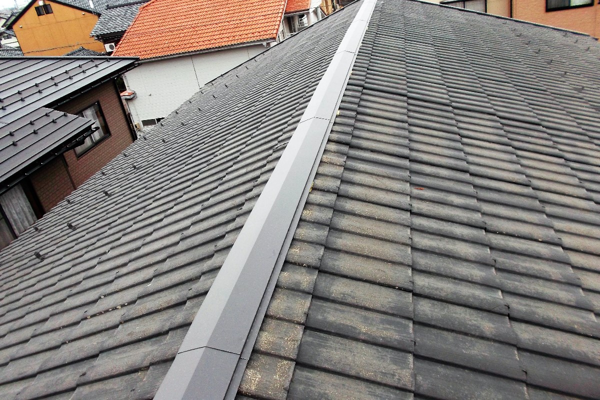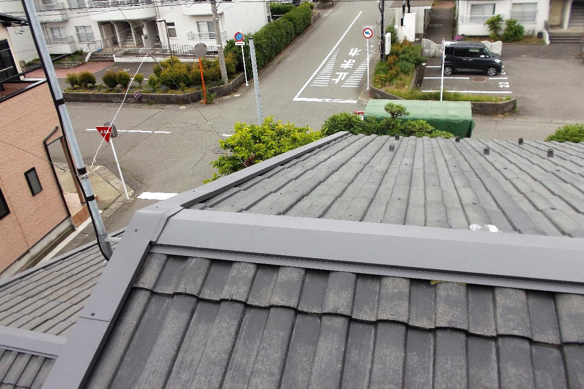 | 屋根板金工事で拝み・棟・登りの重要な部分の雨漏り補修工事させて頂きました。 |