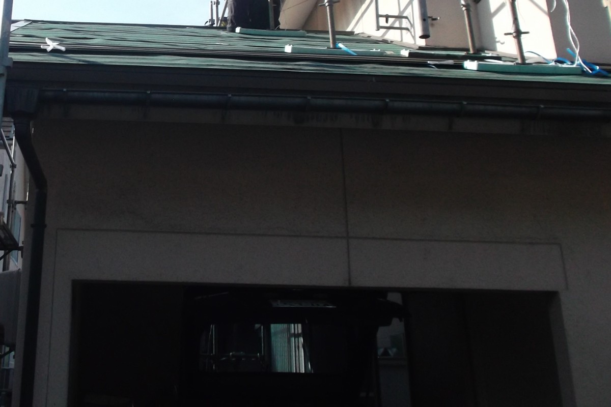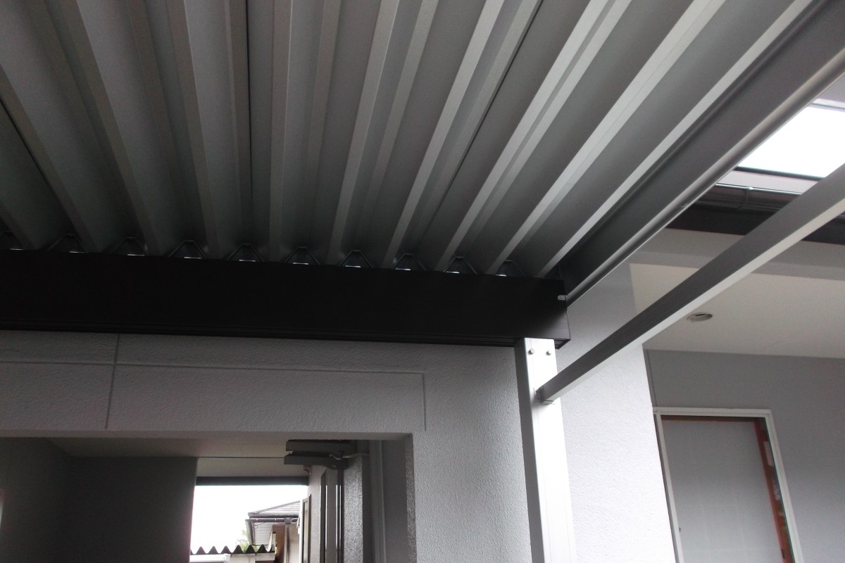| 三協アルミ製・折板ガルバリウム鋼板0.8mmペフ無し・角柱4本H23・間口4310/奥行5500/横桟BKD-Y4・モルタル仕上げなど。 |