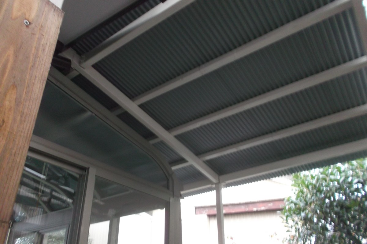鉄工にてサンルーム囲い工事になります。事の経緯は2021年初頭の大雪によりサンルームのポリカーボネートの破損です。数年前にサンルームを建てましたが、大雪でポリカーボネートが外れてしまい今後のことも考えてサンルームの上にトタン屋根を付けて欲しいとご依頼いただきました。建てる場所にもよりますが、正直、北陸などの積雪がある地域には強度的にサンルーム事態向いていませんので暗くなりますが、屋根雪を降ろす事が困難な方には良い方法だと思います。【メーカーや職人さんが悪いのではなく積雪地域向きではありません。】最近よく大雪になる事が多いので毎年修理依頼して来るお客様もいます。一回のパネル修理でも何十万かかかりますし、修理費も安くはないです。見た目は良くないかもですが、お客様的には良い判断かもしれません。何とか雪本番前に完工出来ました。O様、工事ご依頼ありがとうございます。
