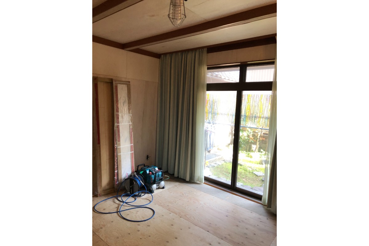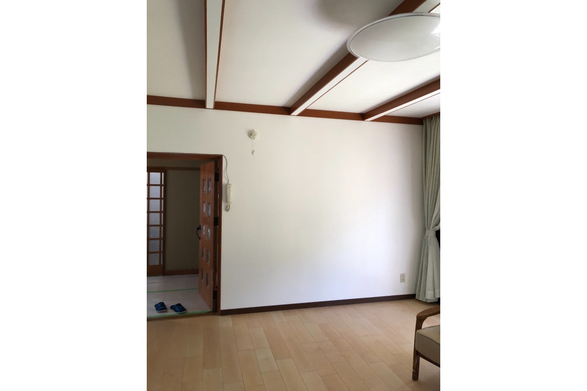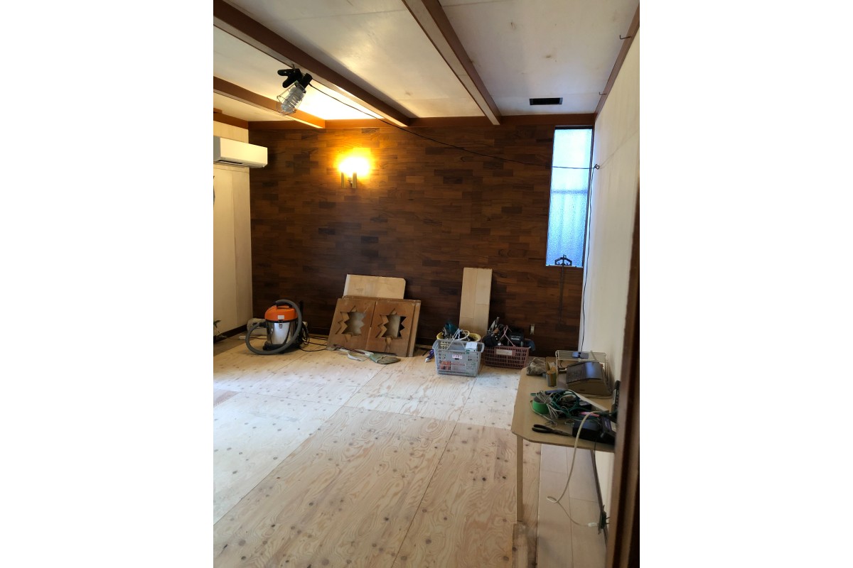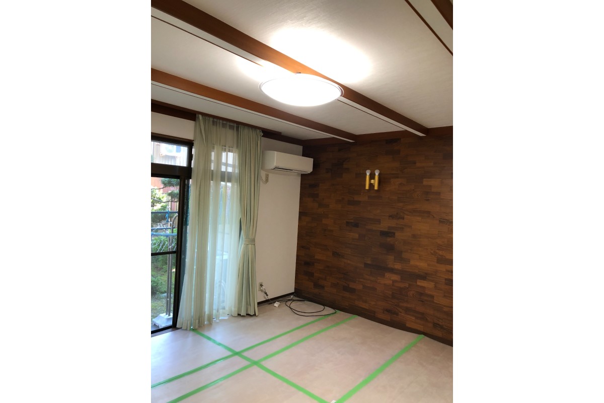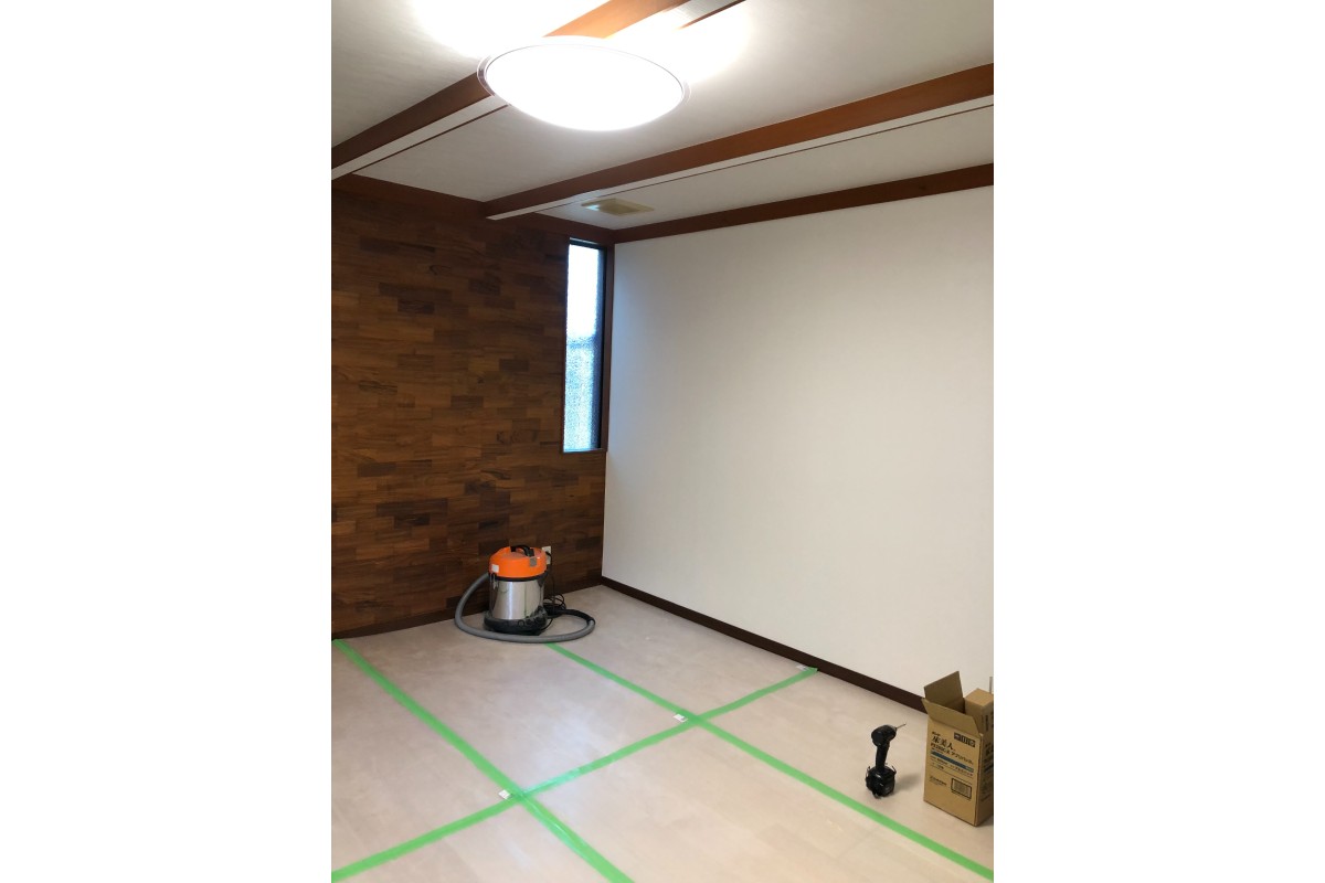 壁、天井 4mmベニヤ貼り付け、クロス仕上げ。