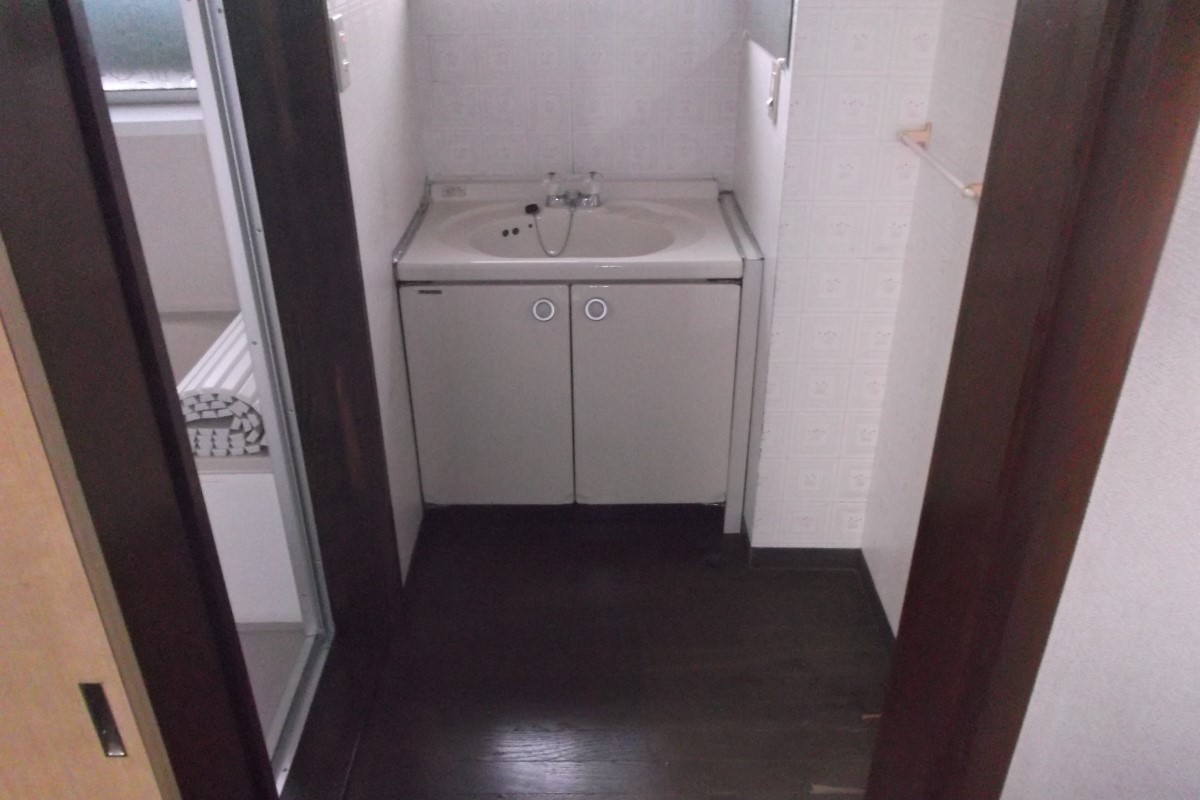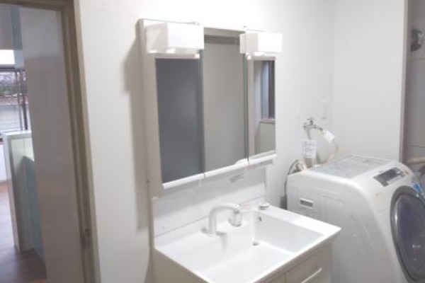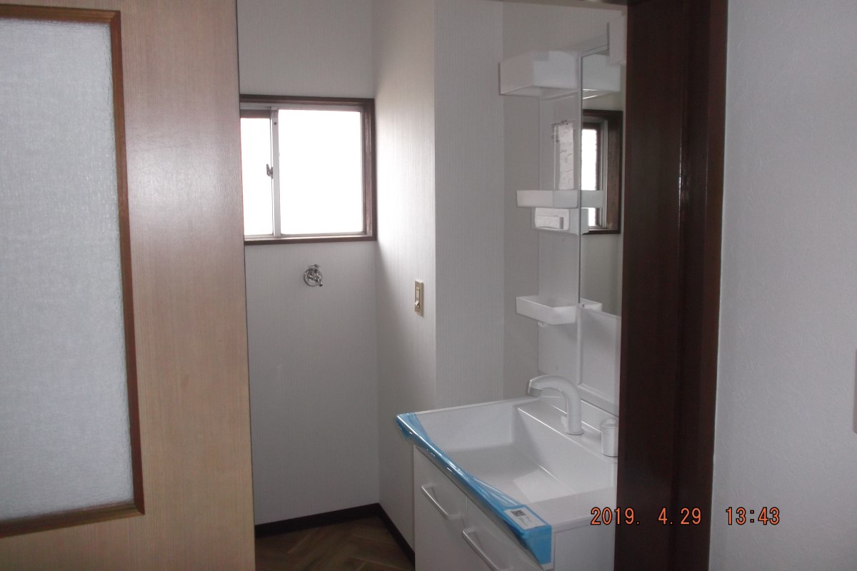 場所変更の為、一部給水管工事。洗面化粧台取替工事。
