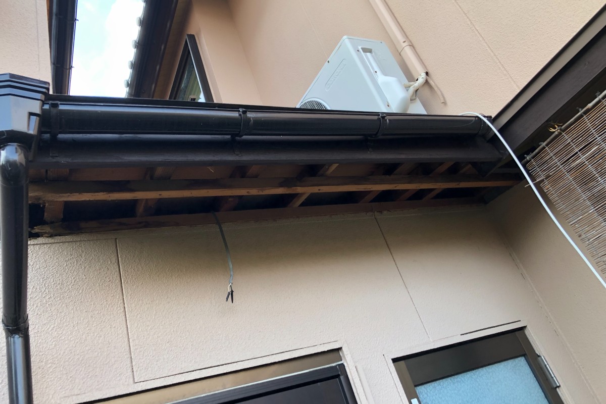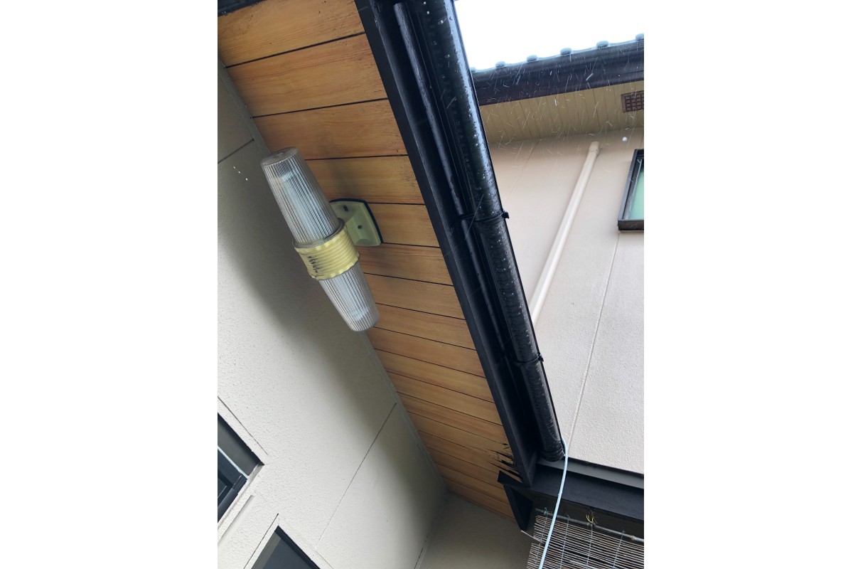 軒天の屋根が水漏れして、雨漏れしている状態でした。