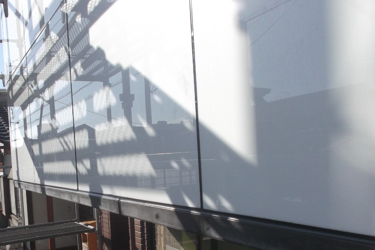 3階建て住宅正面ホーロー製のデザインパネルのコーキング打ち目地打ち直し工事