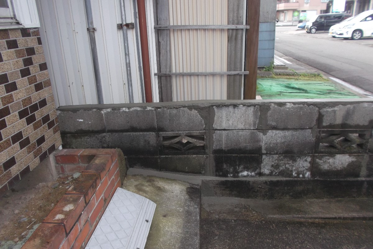 駐車場に面したブロック塀修理のご依頼です。お客様ブロック塀が古く、ガタついている物は取除き簡単な補修工事して欲しいとご依頼いただきました。上部2段目までガタツキがあり、お隣様には小さいお子様もいますし心配だからとの事でした。工事的には、2段取除き、ブロック塀の穴にモルタル詰めてひび割れなど補習後、天場ならしして完了しました。