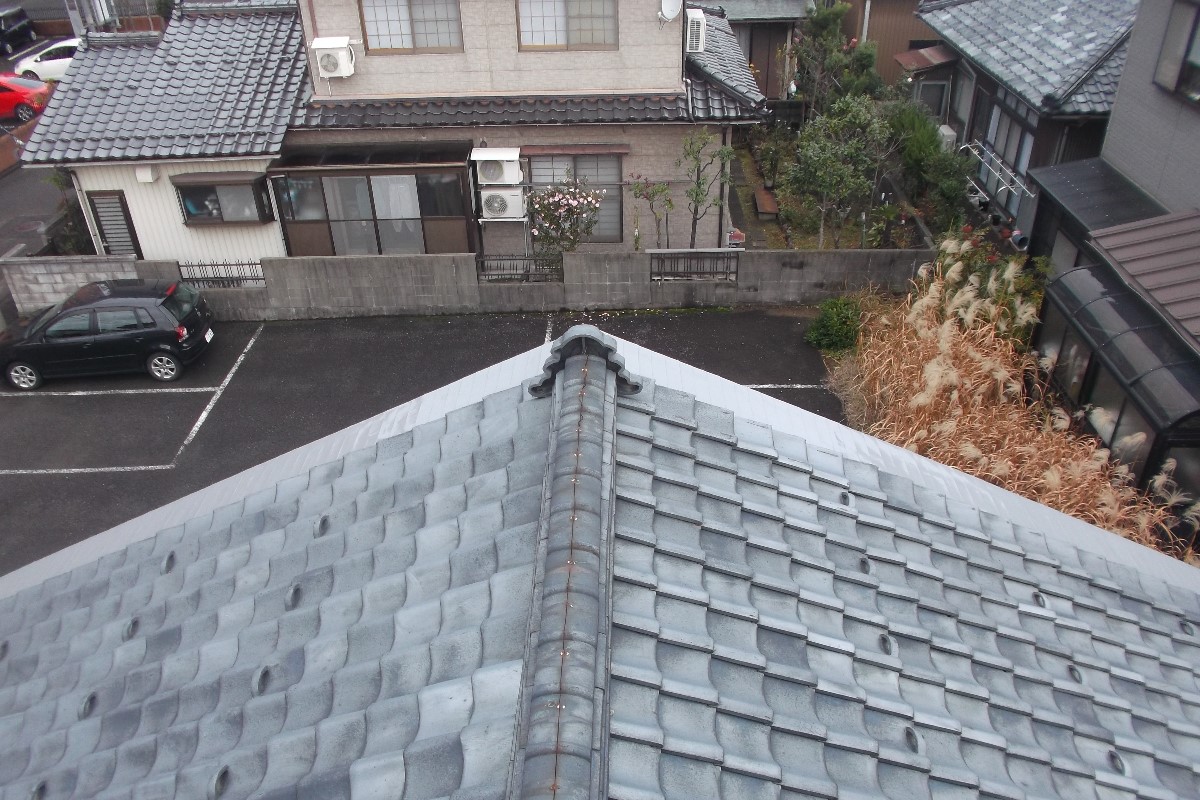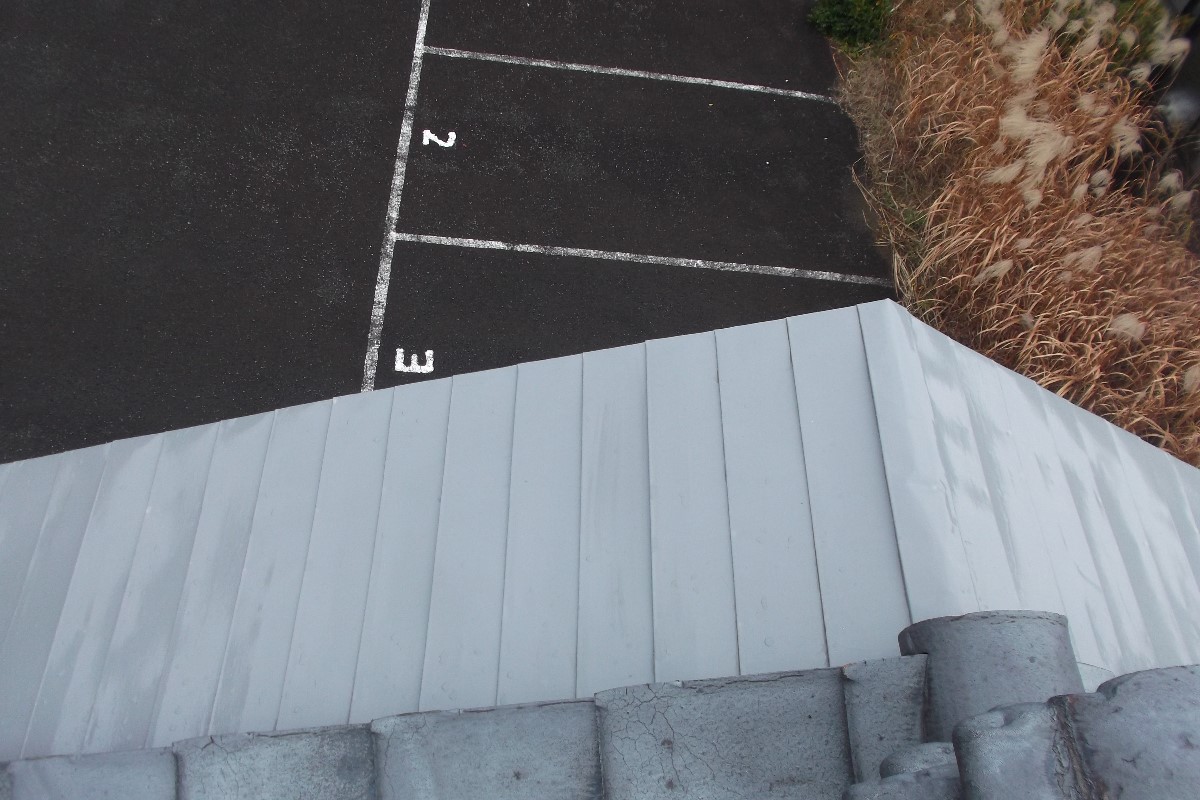 工事OBのお客様です。既存の画像データが屋根全体を映してないので分かりにくくて、すいません。(汗・・)建築にお詳しい方ならご存知でしょうが、近年では、酸性雨の為、銅板屋根の腐食等々が、凄く気になるところだと思います。銅板屋根はすごく美しいのですが、色も変色しやすく、ひどい時は、細かな穴が開いてきます。(板金の折目などから、往年劣化によるもの。)ご相談受けまして、シリコン塗装にて対象致しました。S様、OBのお客様で、いつも大変お世話になっております。ご依頼いただきましで誠にありがとうございました。
