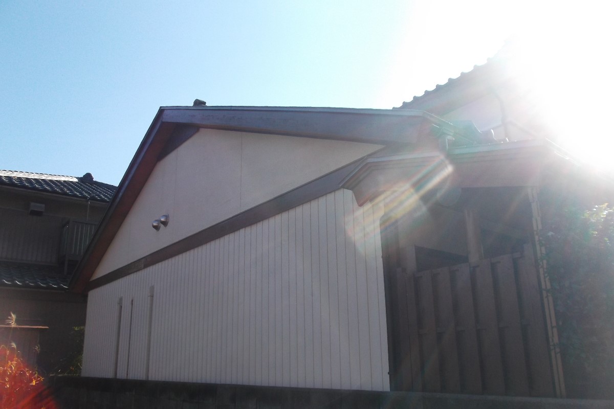 住宅の破風板と幕板の一部塗装工事させていただきました。画像では分かりにくいと思いますが、北に面した所なので、もともとの塗装がかなり剝がれ取れてきていました。特にひどいところだけの補修工事だけで工事完了しました。今回は施工場所に恵まれましたが、本来なら足場工事も含まれますので、こんなに安くは施工できません。お客様、工事依頼誠にありがとうございます。