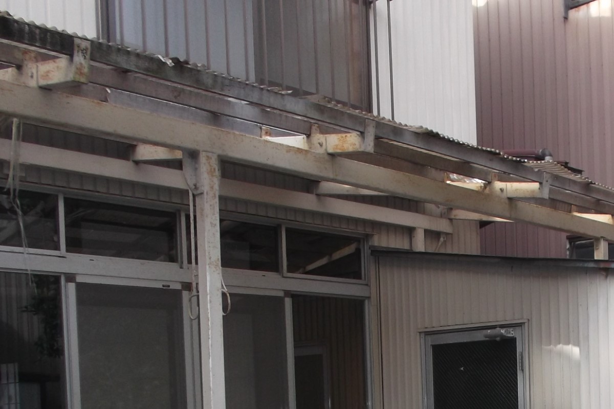 ポリカーボネート屋根既存解体、張替、鉄骨骨組再塗装工事。
