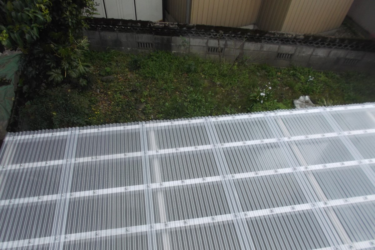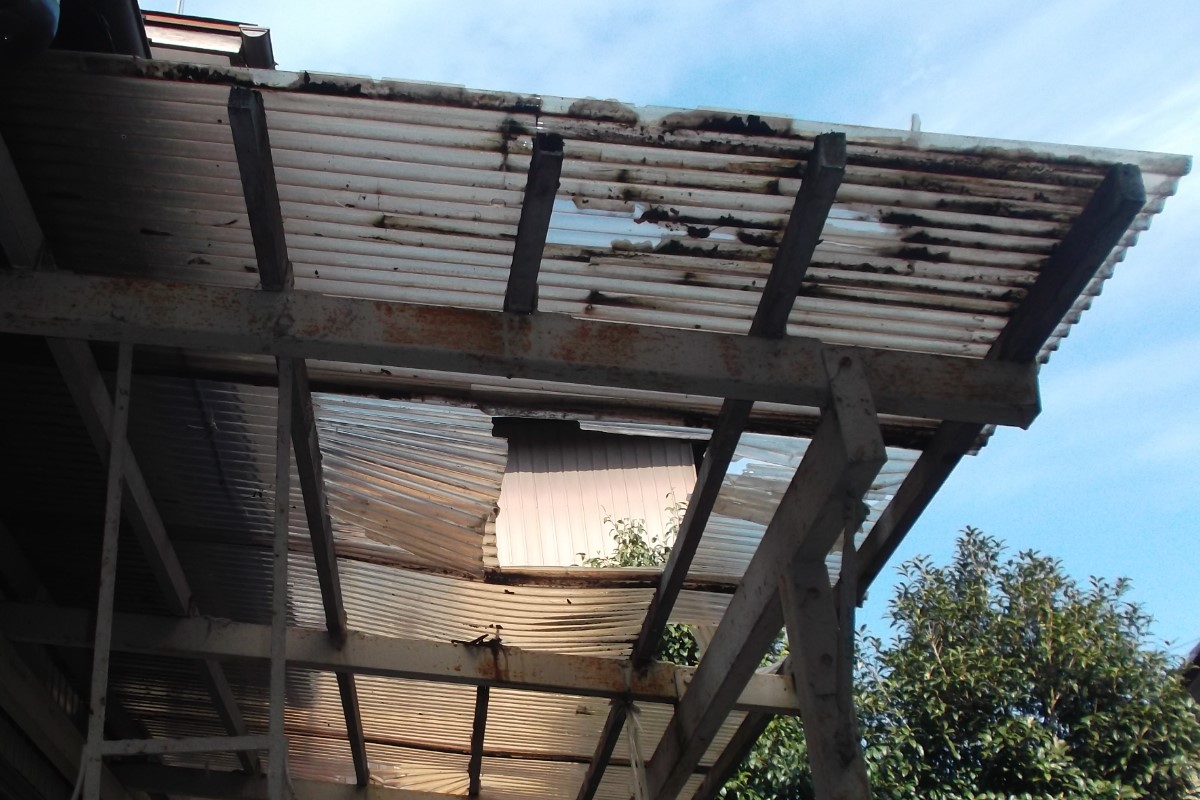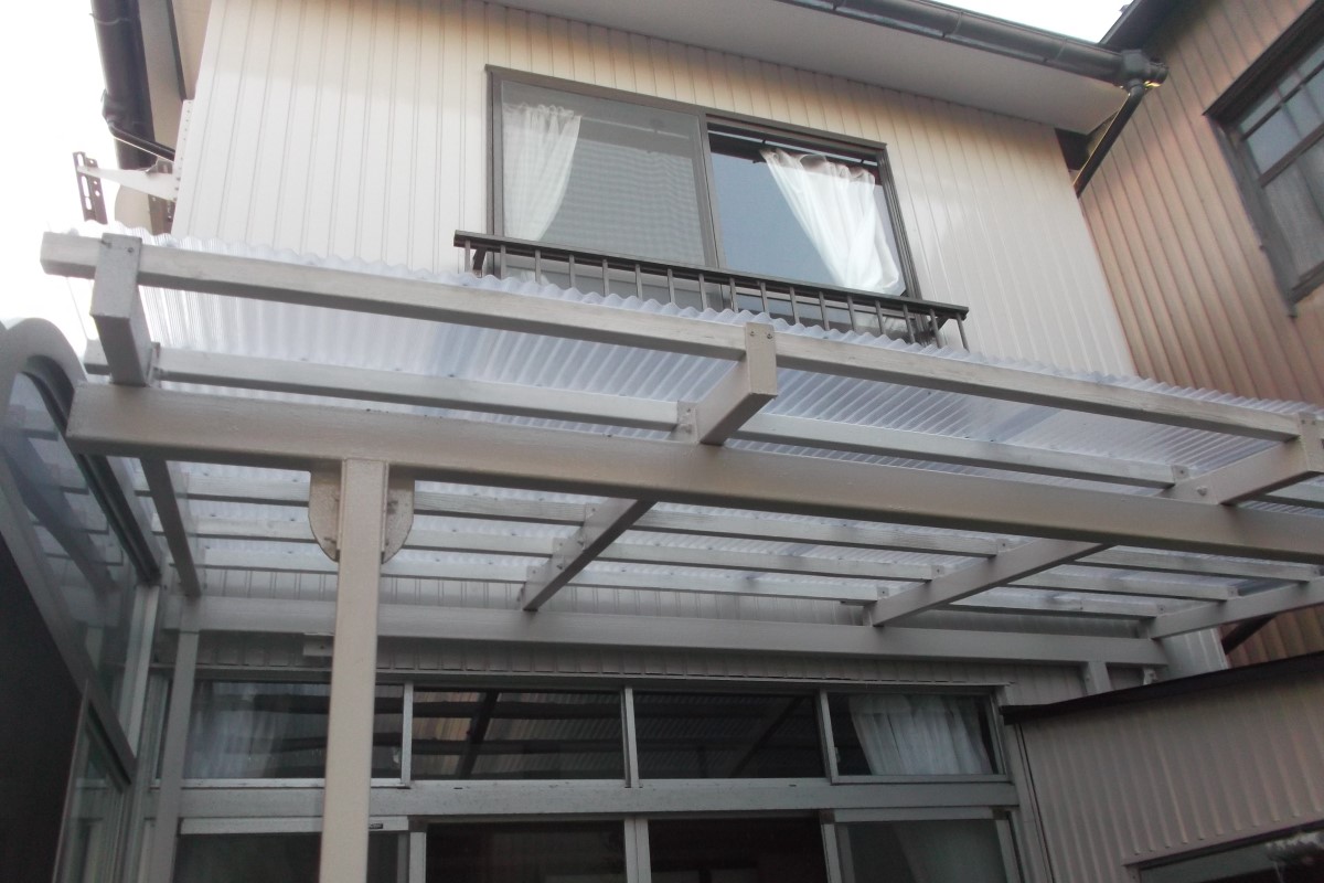 寿命を迎えたポリカ波板の取替工事のご依頼です。ついでに屋根タルキ(防腐剤塗装)も交換して張替させて頂きました。工事依頼誠にありがとうございました。