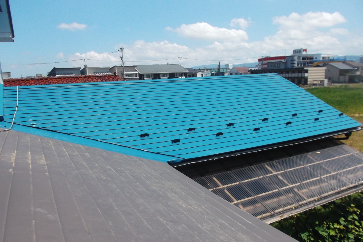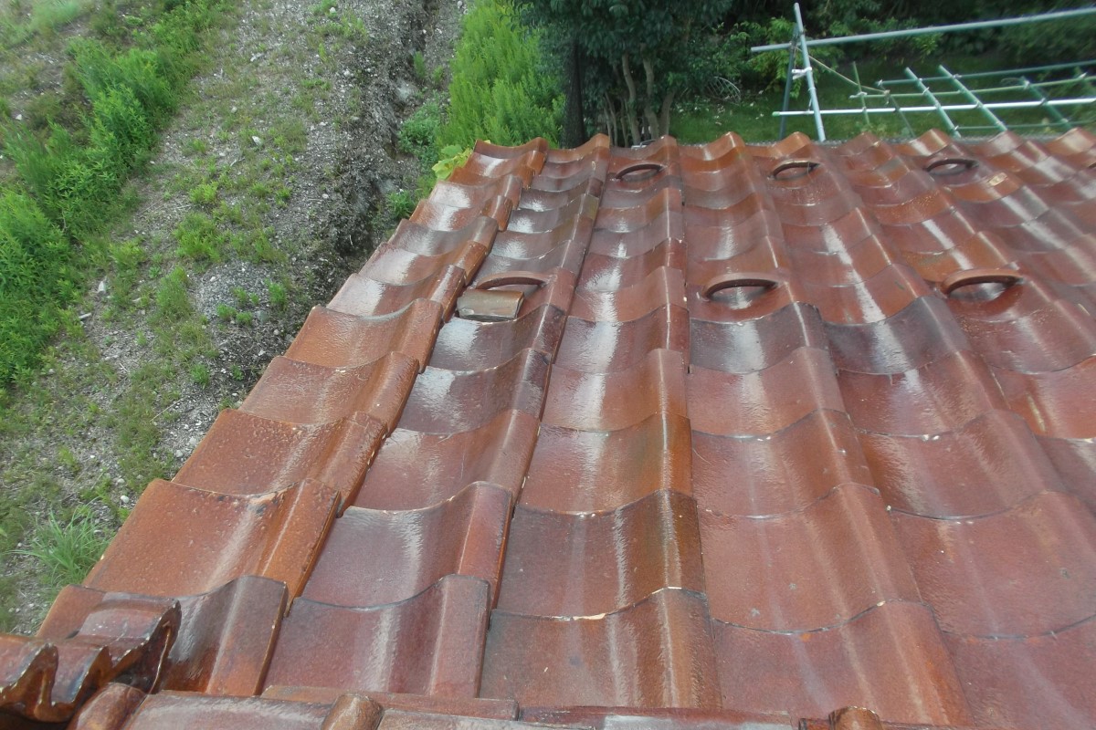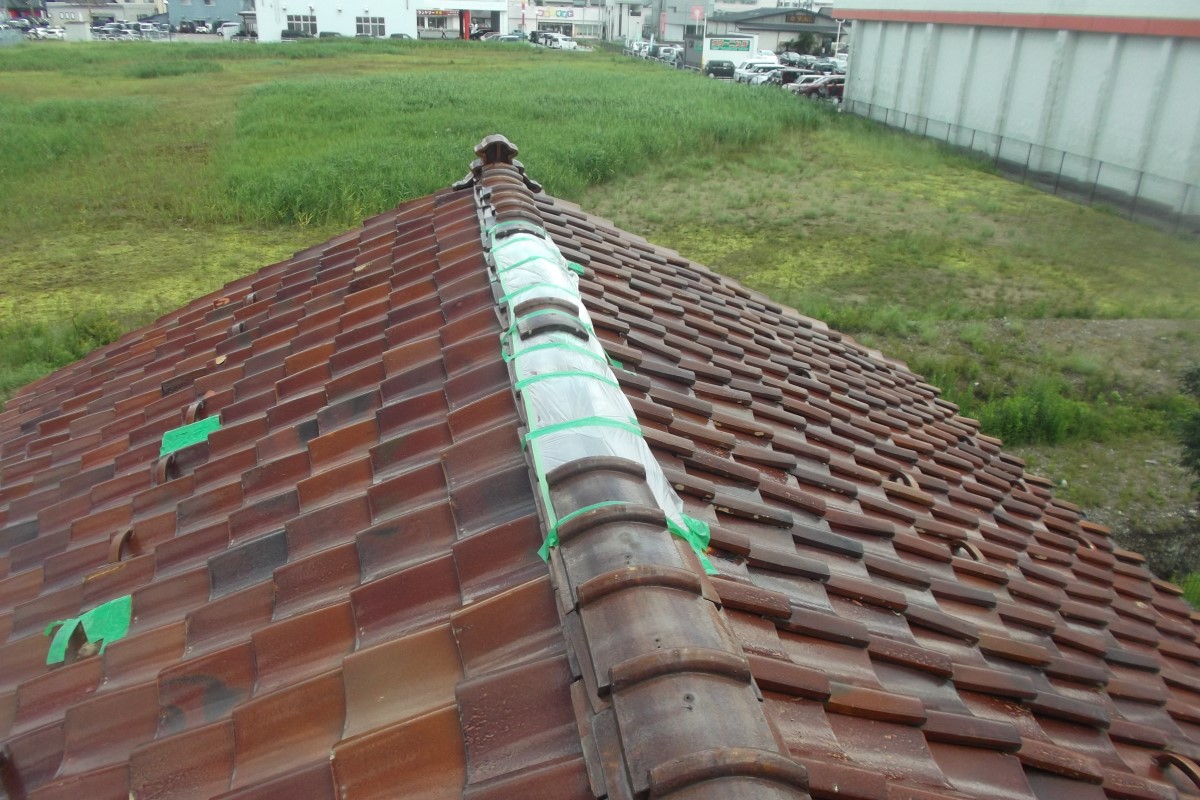 工事OBのお客様です。以前、ヤマキシ開発店にて一部下屋のみ瓦を修理しましたが、本屋根の方も雨漏りがひどくなってきたみたいなので、今度は、瓦では無く板金屋根に全部葺き替え依頼がありました。お客様のお宅の瓦は、既に廃盤で、瓦会社も廃業して取寄せ出来ない状態でした。今後は、物が飛んできても割れることが無い板金屋根に前々からしたかったそうなので、ご成約に至りました。これで雨漏りの悩みから解放されると、お客様も安心して居ました。U様、工事依頼誠にありがとうございます。