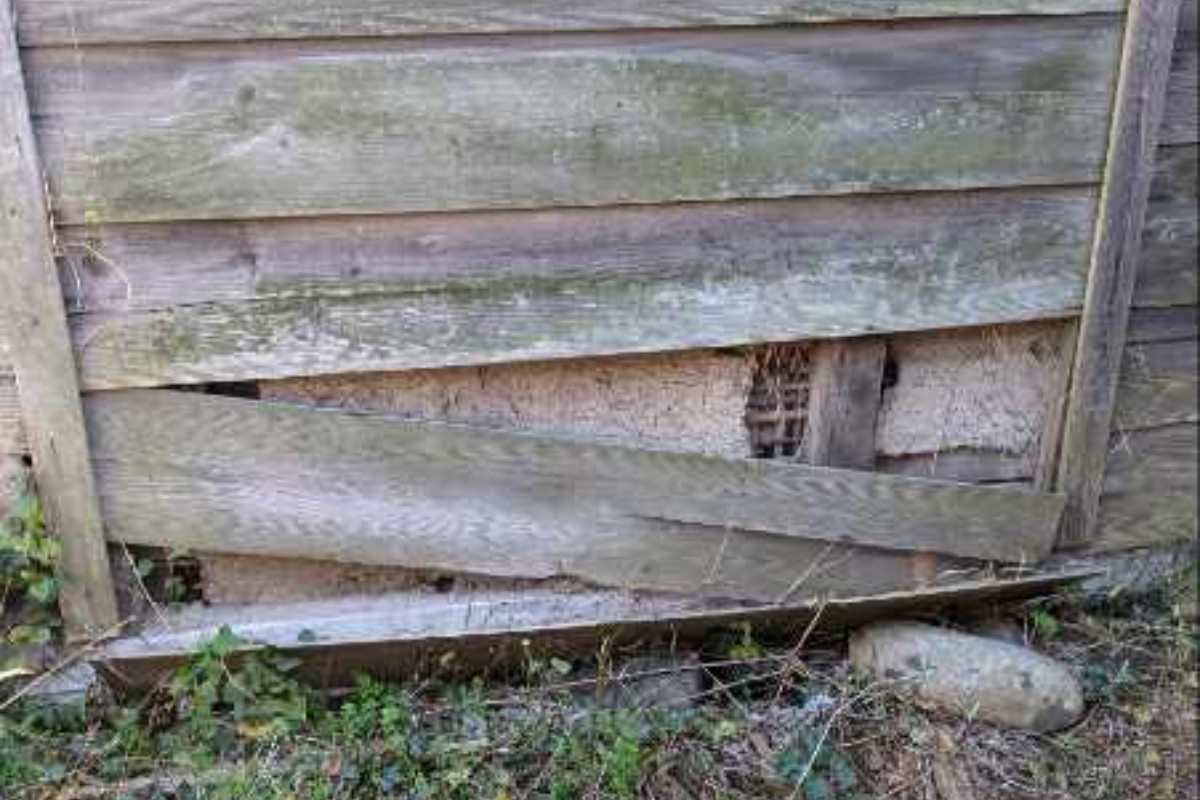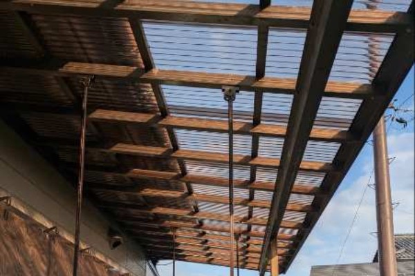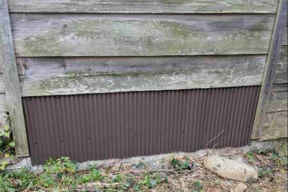外壁の剥がれているところをトタンを使って修復しました。