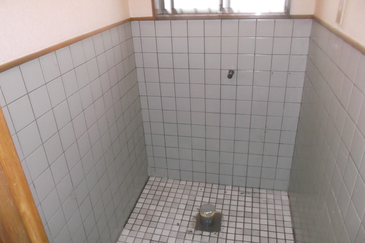 | サンゲツ製・床クッションフロア張り&腰壁タイル部分クロス張り工事にて内装工事。 | |