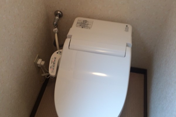 前日に古いトイレ取外し、次の日の午前中にクロス職人さんに工事して頂き、午後から開発店スタッフにてトイレ取付けて完了しました。お客様、工事依頼ありがとうございました。