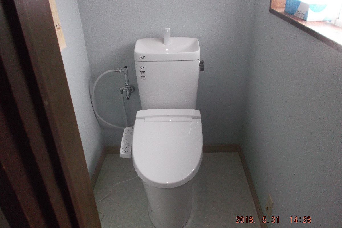 お客様、チラシを見て来店されました。2Fトイレがもう古くなったので取り換え工事して欲しいと依頼されました。ついでに床もクッションフロア張り替えおすすめした所、即答で張り替えて欲しいOK頂きました。