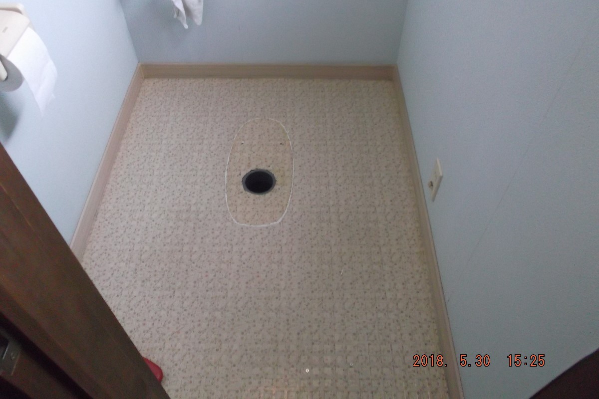 床クッションフロア張替工事・トイレリフォーム洋から洋に取り換え工事。