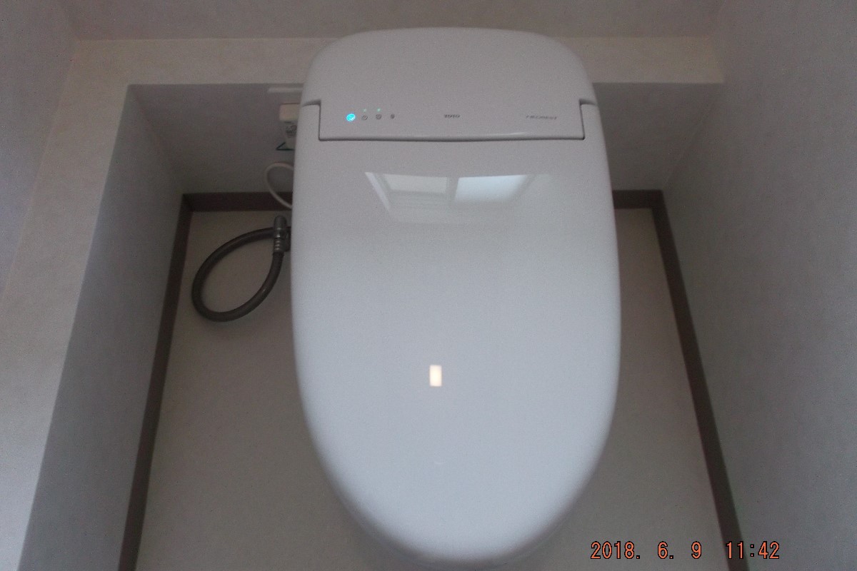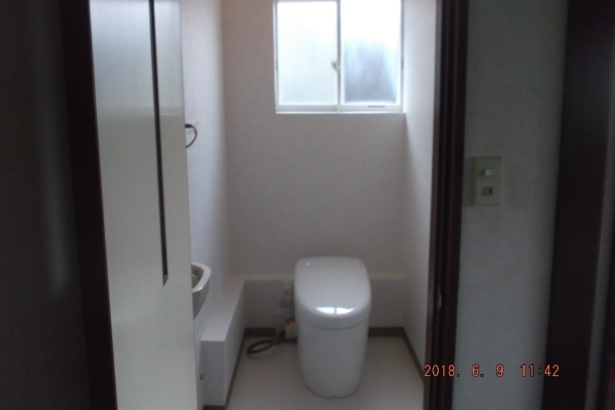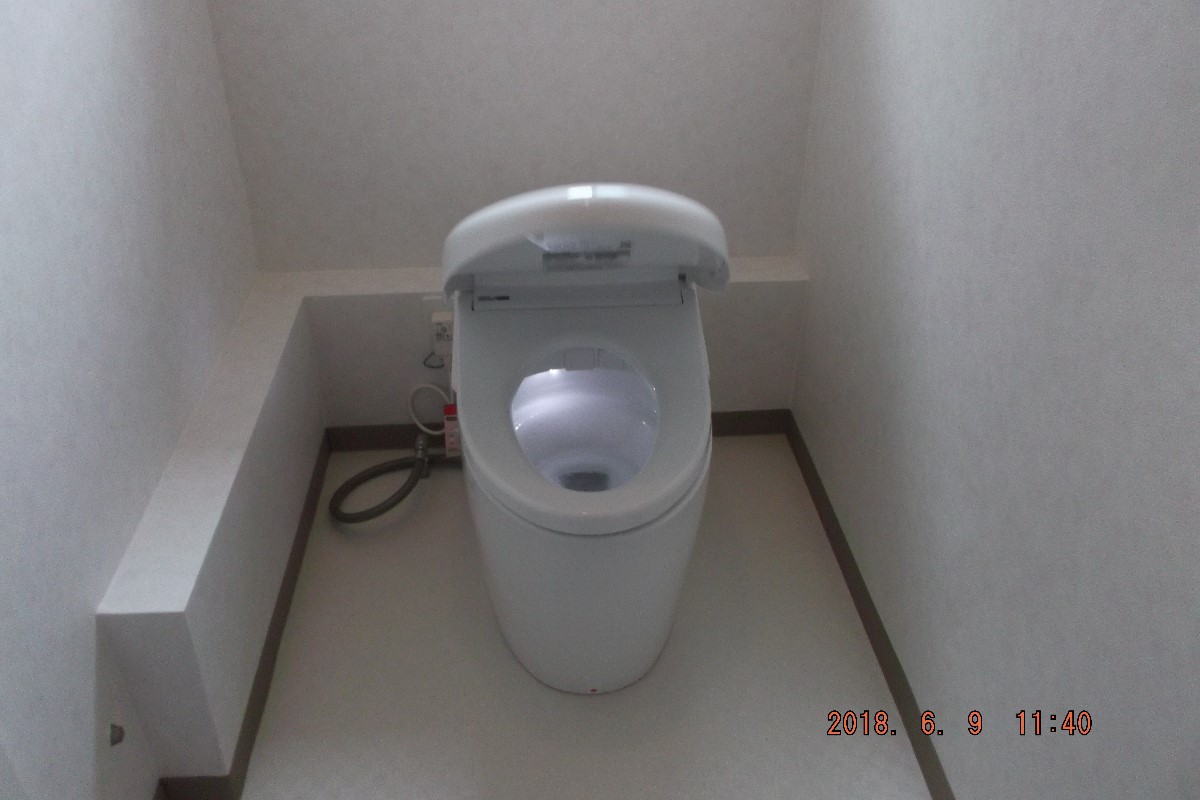 年配のお客様で和式トイレがつらくなり、洋式トイレにリフレッシュ工事したいと工事依頼受けました。解体途中で基礎部分が一部ブロックになっていて給水管が中で施工されており構造上解体出来ない為、お客様と相談してカウンターのようにデザイン壁にしました。完成後は、「トイレットペーパーなど置けるので逆にして良かった」と喜んで頂きました。あとの工事は問題なく、完了となりました。S様トイレリフォーム依頼ありがとうございました。