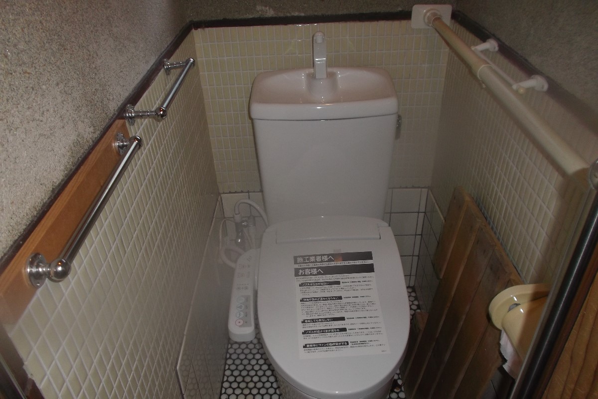 ご自宅を新築する予定のお客様で、そのツナギで、一番お買得なトイレリフォームをご依頼されました。なぜ?と思われる方もいると思いますが、理由があるのですね。既存の便座のウォシュレットが壊れて使えなくなり水を溜めるタンクも壊れていたのでした。お客様的には、痛い出費ですが、奥様が、おめでた!ということもあって、交換工事依頼となりました。新築一戸建てを建てる時も水回りは、ヤマキシ開発店にてよろしくお願い致します。