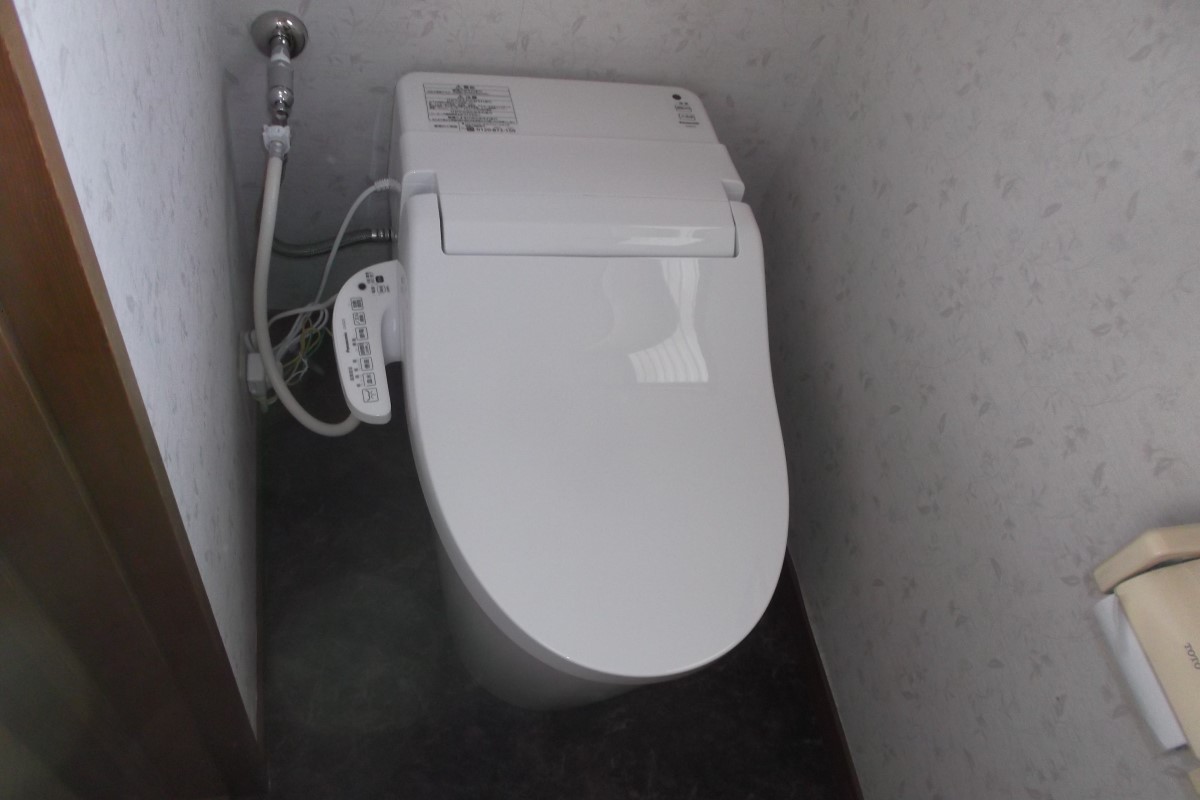 トイレリフォームで、工事依頼新規のお客様です。既存の温水便座の故障で、水漏れが治らずこの際交換したいと依頼頂きました。工事もスムーズに進み、無事工事完了です。M様、工事ご依頼いただき誠にありがとうございます。
