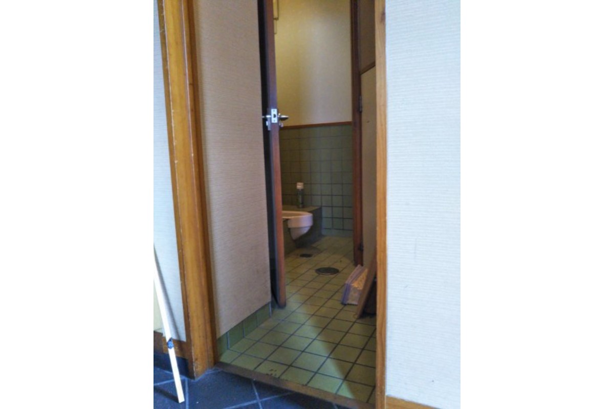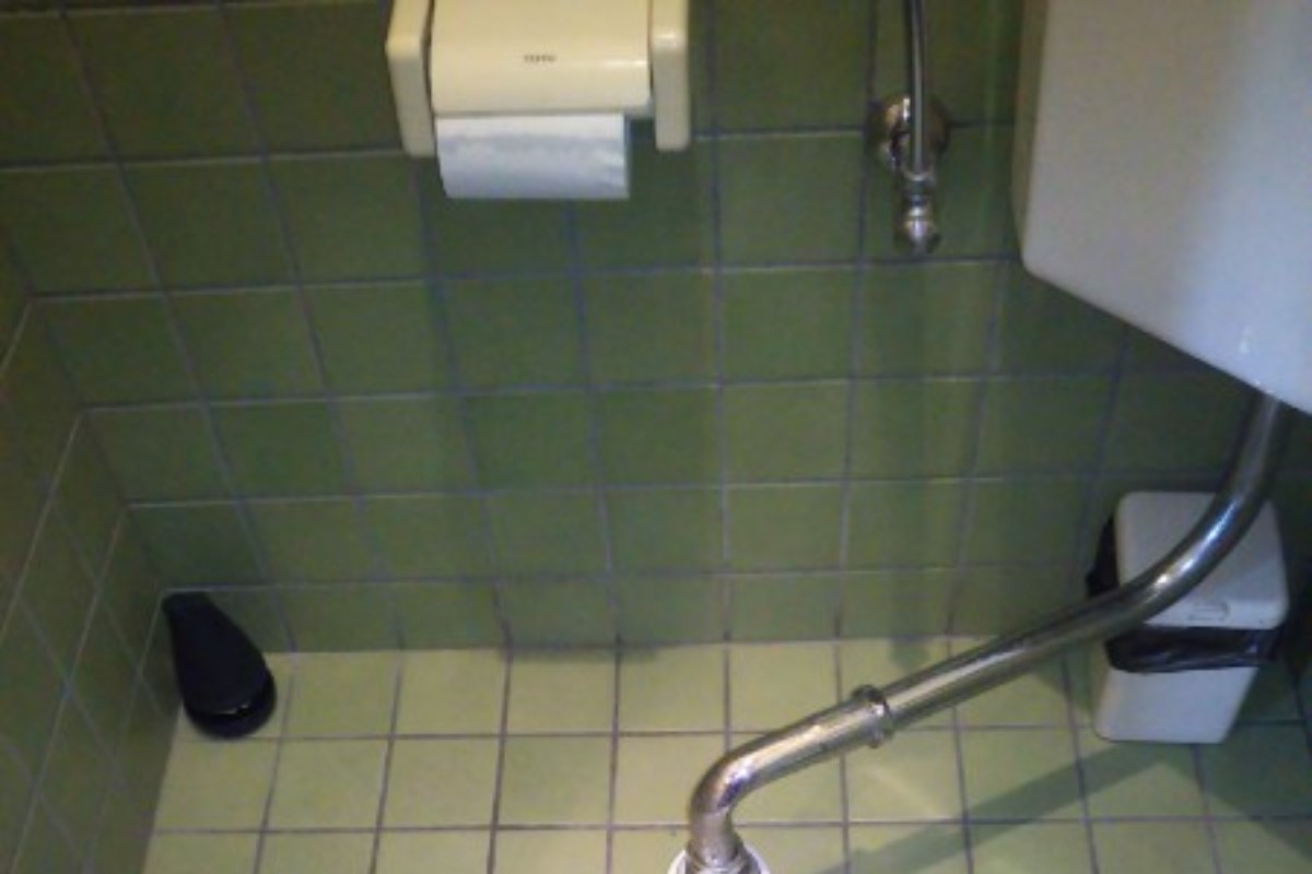 和式便器解体工事・給排水設備工事・床クッションフロア張り・壁クロス張替工事。