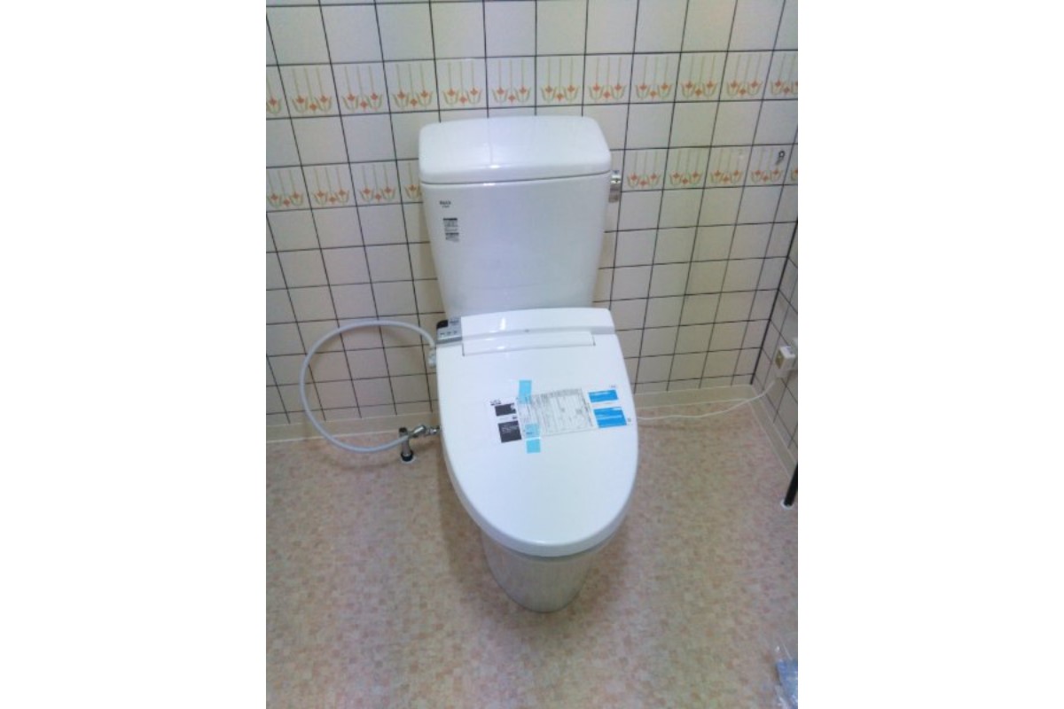 WEBからのご依頼です。和式便器のみ解体して、給排水設備工事、床下地工事後クッションフロア張り工事してトイレを固定しました。開発店工事依頼、誠にありがとうございます。