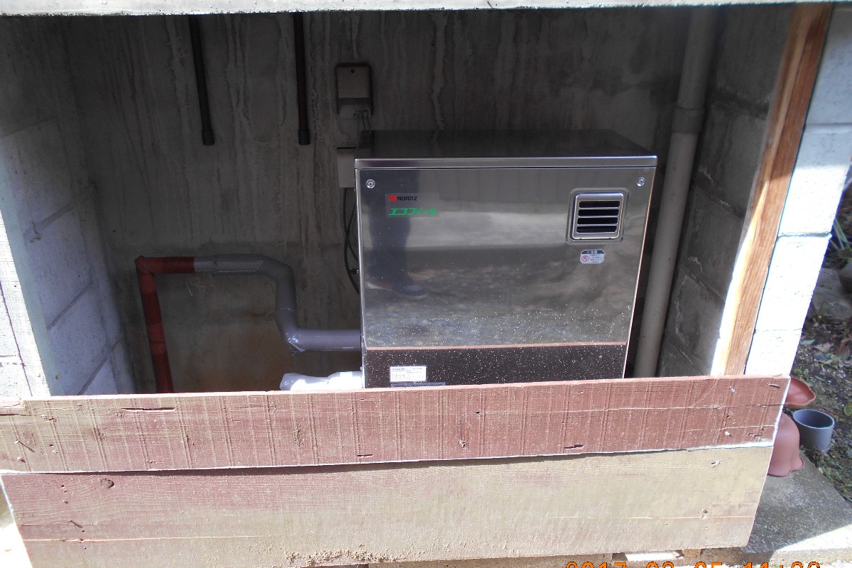 給湯が給湯器の能力低下のため非常に弱い為、見積はエコフィール高圧型セミ貯湯という珍しい機器を取り寄せ施工しました。