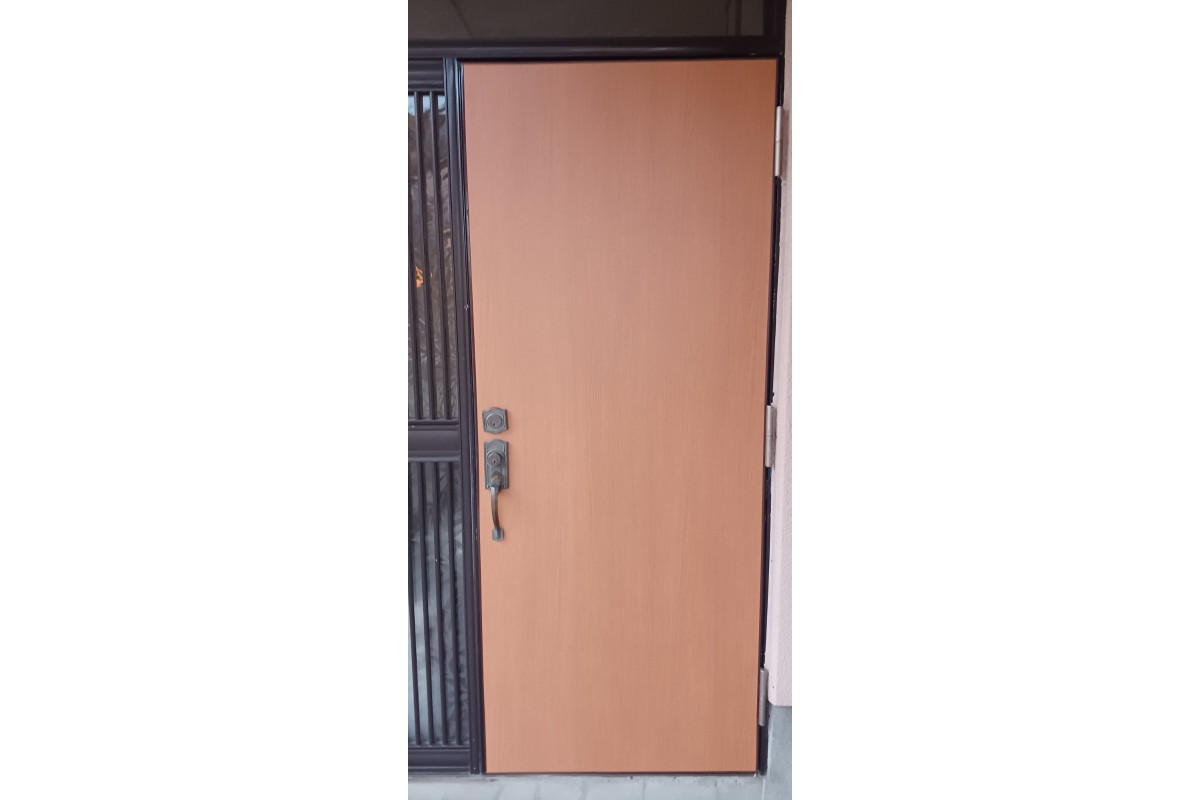 ドアの劣化が目立ってきて安価な方法が無いかとの相談があり、パネルを張り替え見た目も良くなる提案をさせて頂きました