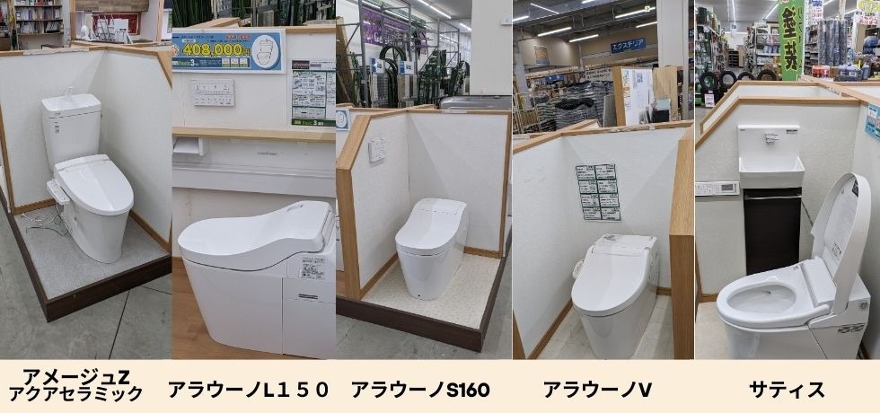 トイレの展示品については全部で5台!各メーカー様の商品の機能やデザインを見て選んでいただけます!