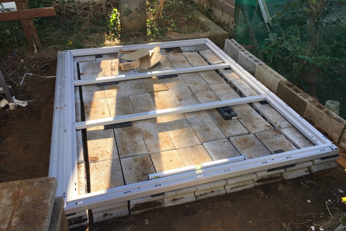 向きの変更と以前の物置下部が土に触れていたため、今回ブロック敷きで施工とご要望がありましたのでそのように施工いたしました。