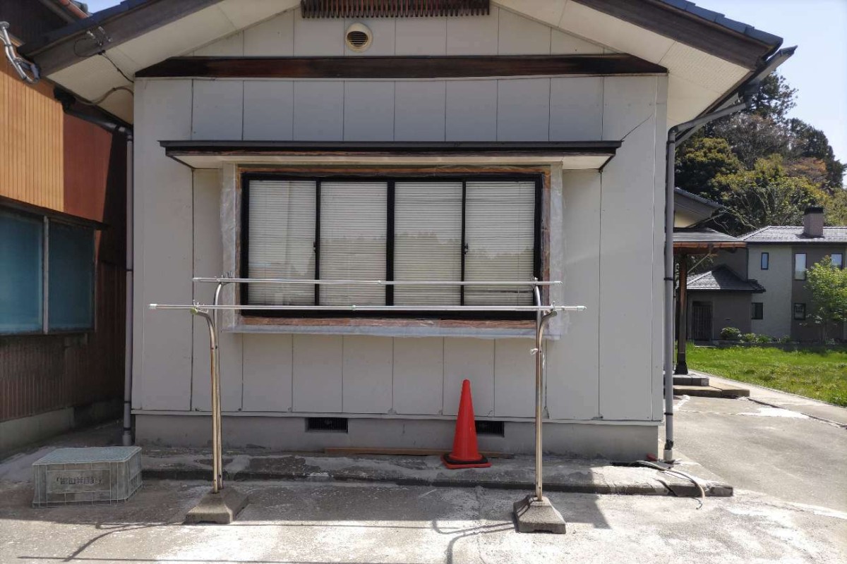 地震により外壁に使用されているボードが破損した箇所の修繕を行いました。