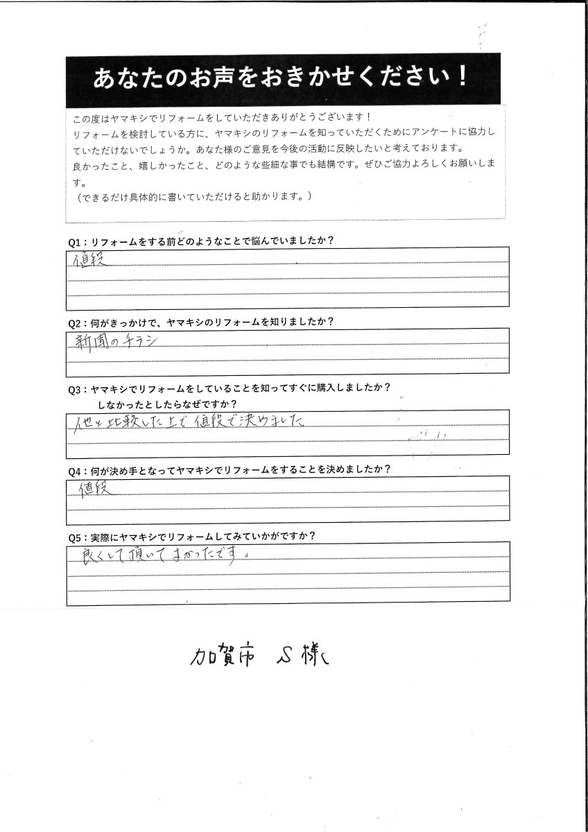 羽咋郡 S様