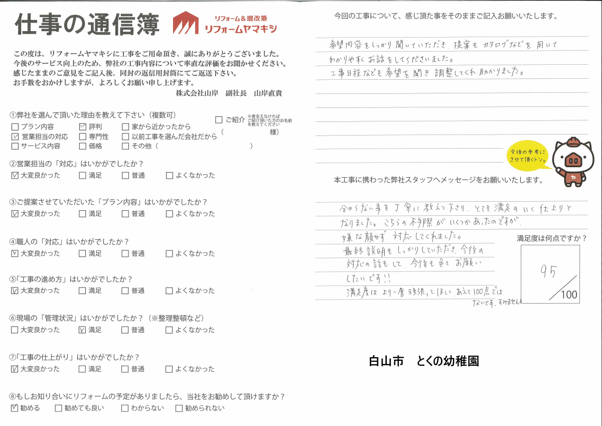 白山市 とくの幼稚園 様