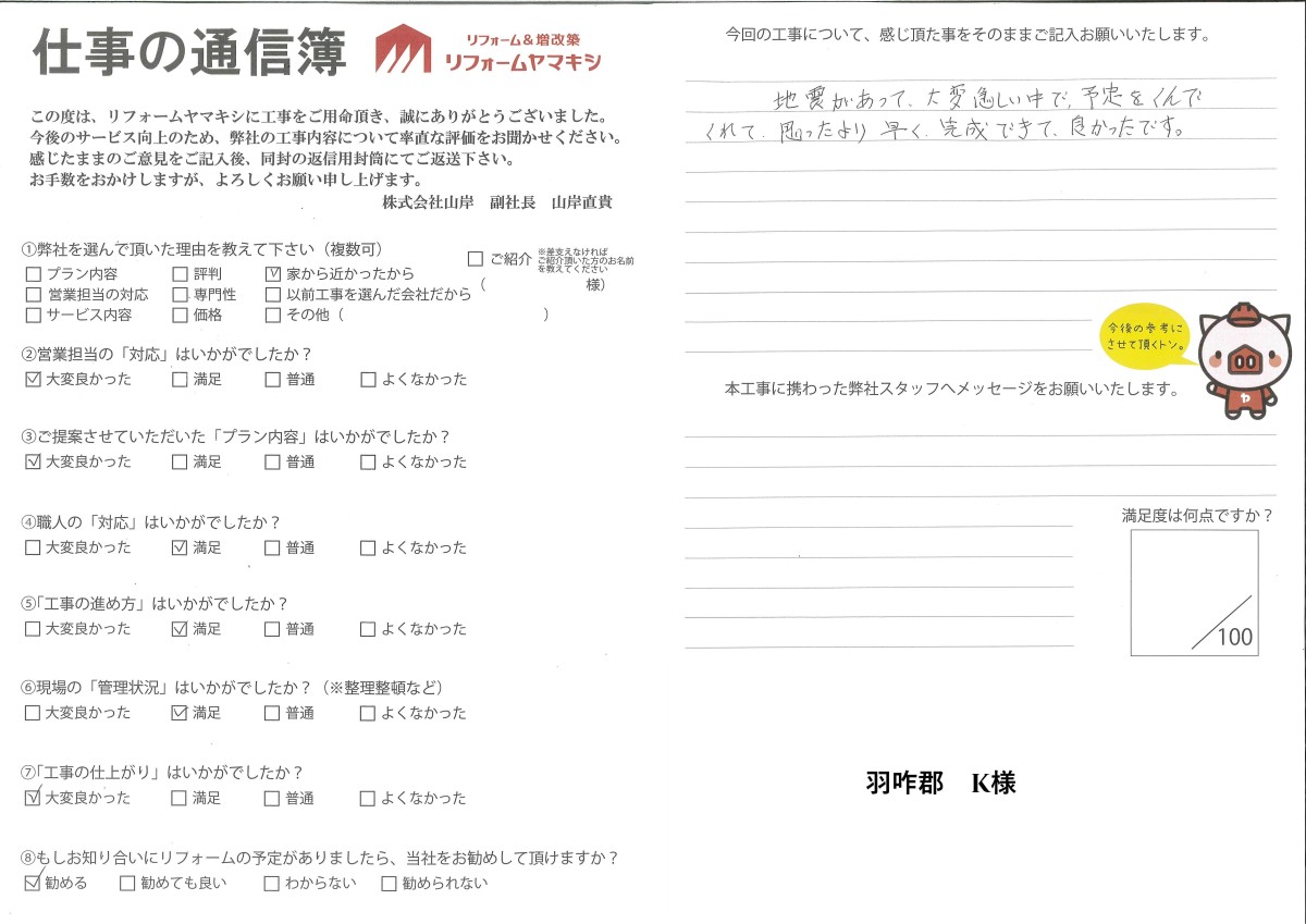 羽咋郡 K様