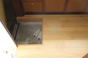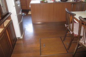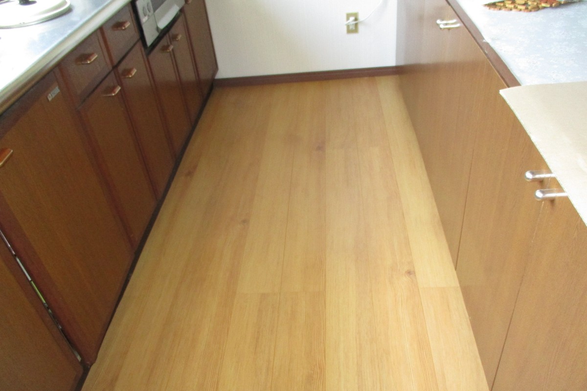 長年使用していたお風呂の床が剥がれていたり、キッチンの床が少し沈む所がある為、リフォームの依頼を受けました。お風呂は、たくさん収納出来る クリナップ ユアシス、床は幸いやり替えをするほどではなく、重ね張りで、フローリングに致しました。たくさん収納でき、キッチンの床も明るくなりご満足されていました。