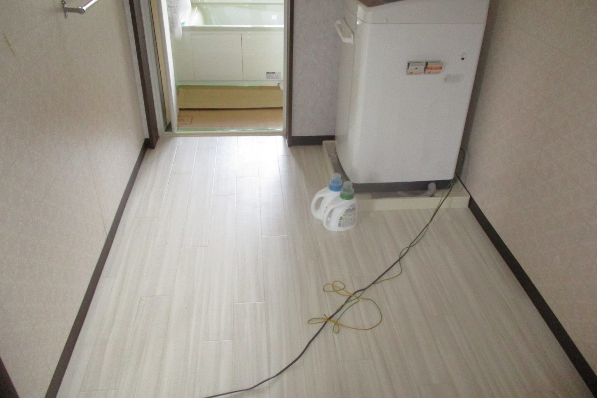 お風呂取替、キッチン床上張り、脱衣場CF、石油給湯器取替
