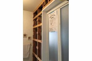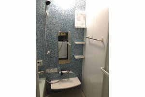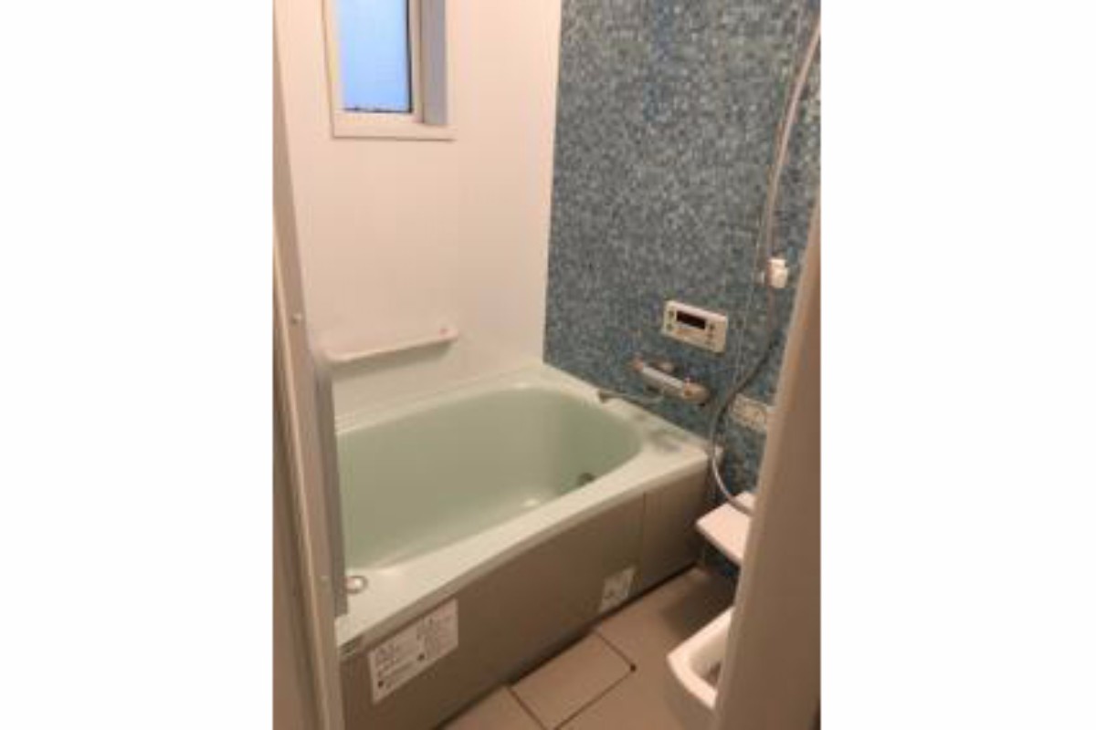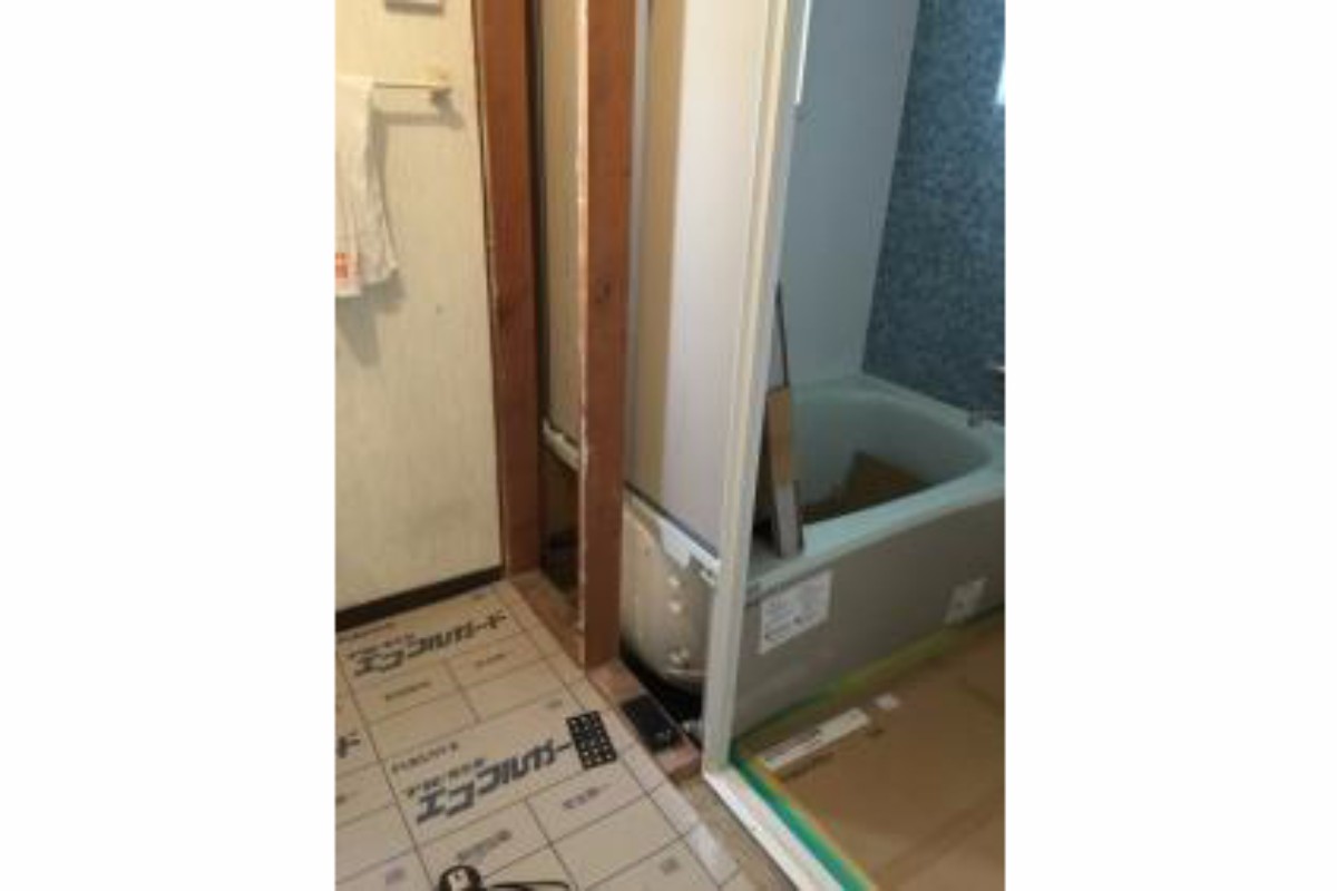 既存ユニット壁の腐食とお風呂カランの逆流との事でユニット入替行いました。ユニット出入り口のバリアフリー化と壁面をパネルで仕上げる事で清潔感あるお風呂に仕上がりました。