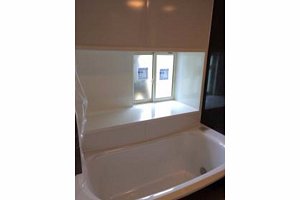 当初は出窓入替で窓回りを塞いでしまう予定でしたが、当社職人の方で現場で窓まわりをパネルで施工することにしました!もともと広いお風呂(1.25坪)がさらに広く感じる美麗の仕上がりになりました!