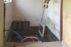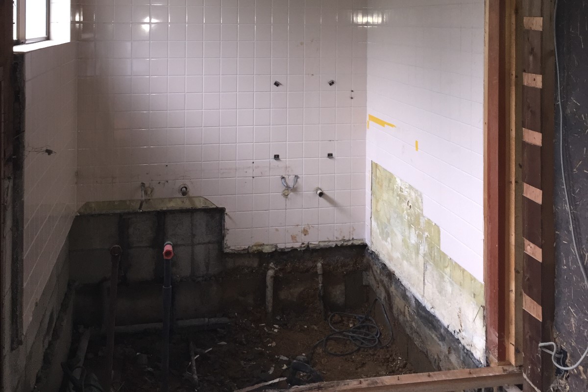 既存浴室解体、土間打ち、給排水配管工事、ユニットバス据付