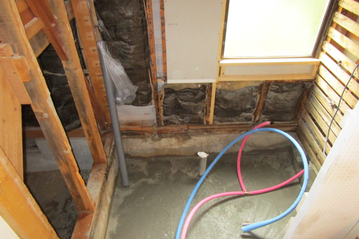 数年前に台所混合栓交換を依頼を受け当時既存配管が鉄管、錆水も出ていたとの事でボイラーを交換した際に圧力が加わり配管からの水漏れ、既存のお風呂下からで修繕が出来なかった為今回ユニットバス施工になりました。
